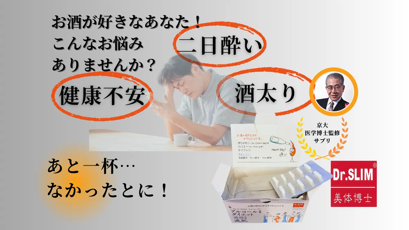 しかし、「アルコール代謝+脂質代謝」を両立し、医学的知見でWアプローチできるのはDr.SLIMだけ。